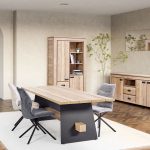 Panneaux de particules ou MDF recouvert avec un mélamine haute qualité. Surface synchronisée et structurée. Charnières métalliques avec amortisseur. Glissières de tiroirs en métal non visibles. Pieds métal finition poudre noir.